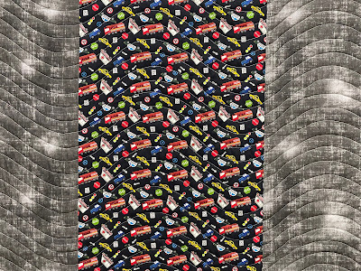 Wow! Nice finishes! I love the colors in the hot crumbs, and it has the perfect quilting, too! Way to use up the vehicles fabric.