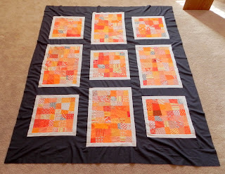I'll take a *sorta* finish today. I did finish the piecing my 'Splash'. It's a pattern found in Amanda Jean Nyberg and Cheryl Arkison's book Sunday Morning Quilts. I wanted mine a little smaller as it will be part of my Crumb lecture trunk show.
